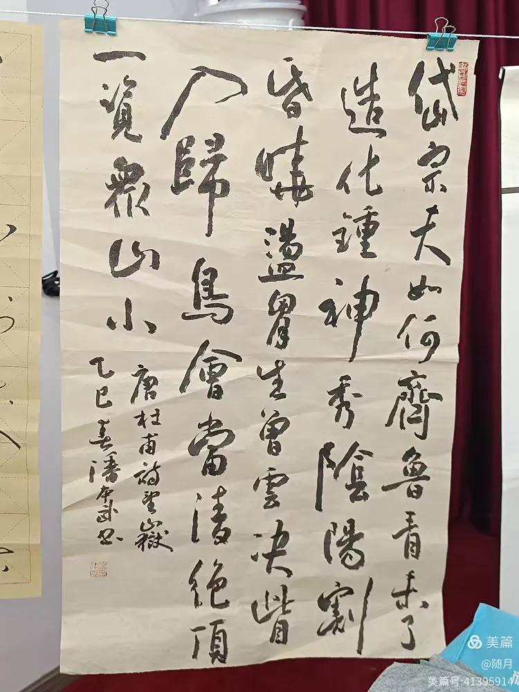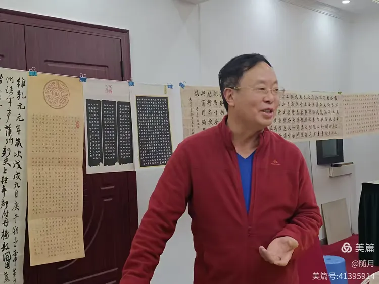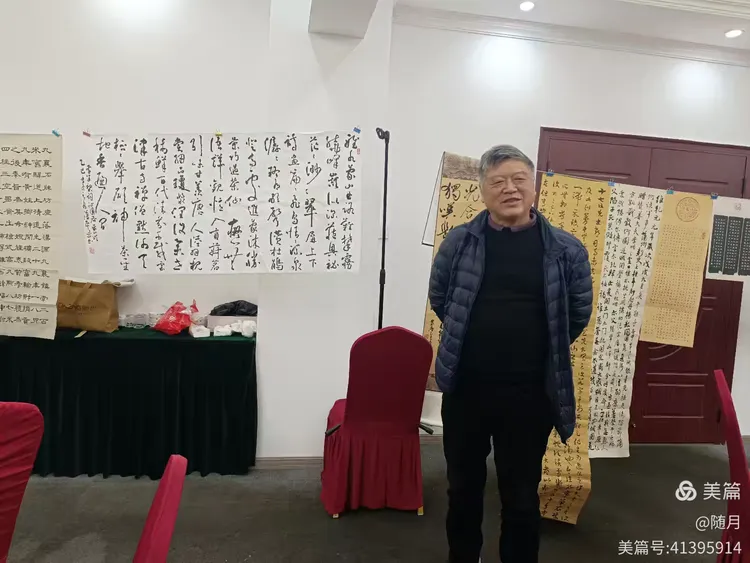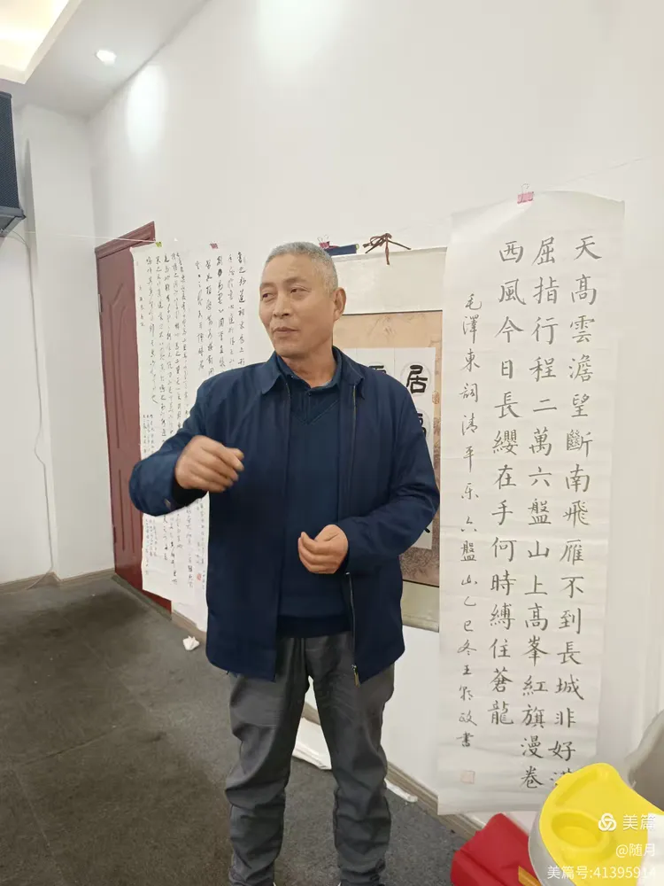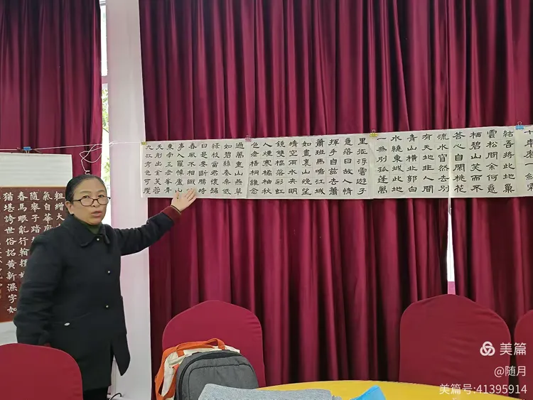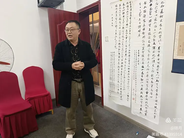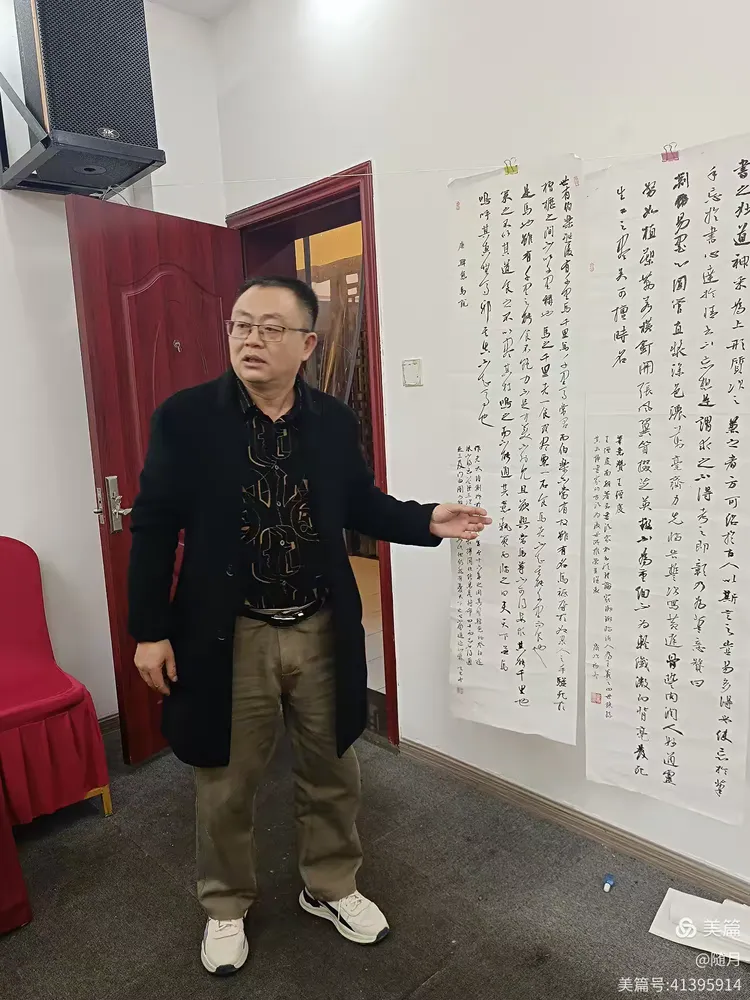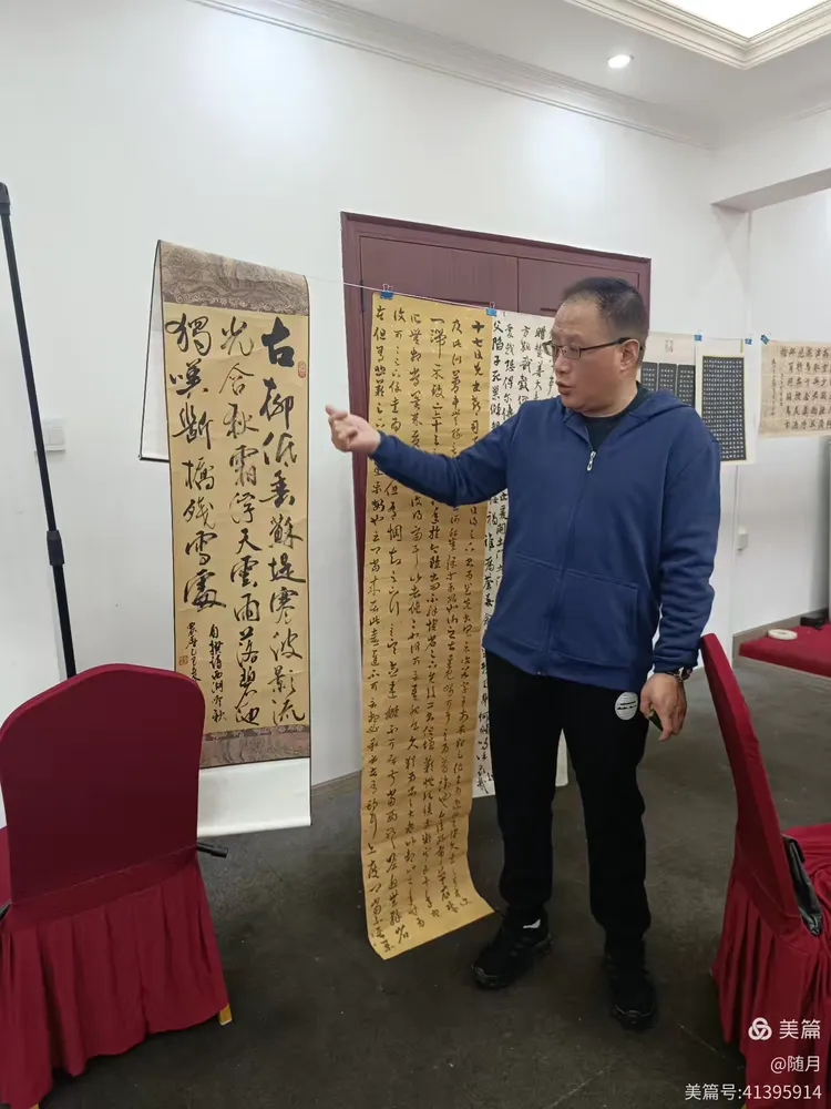 一到活动场地,书友们纷纷将自己的作品悬挂展示于会议室。