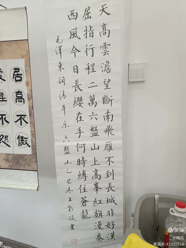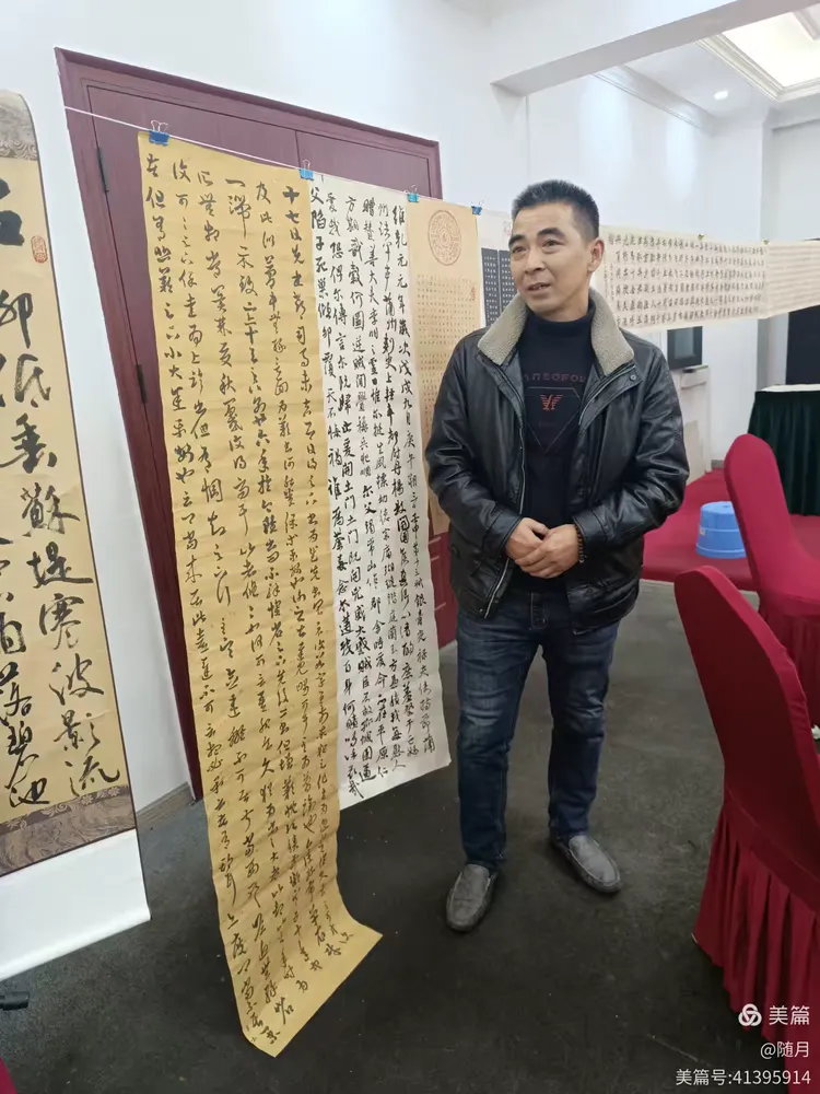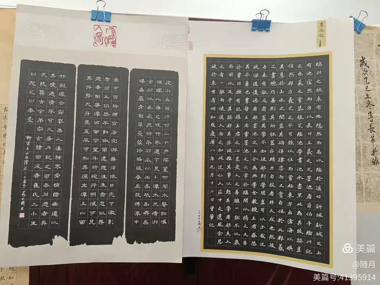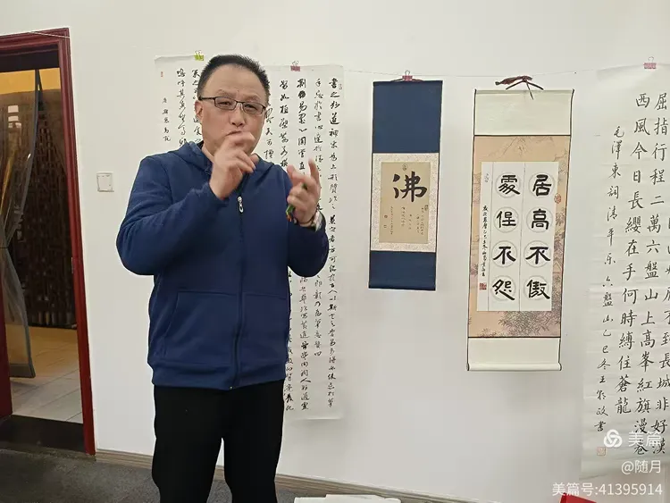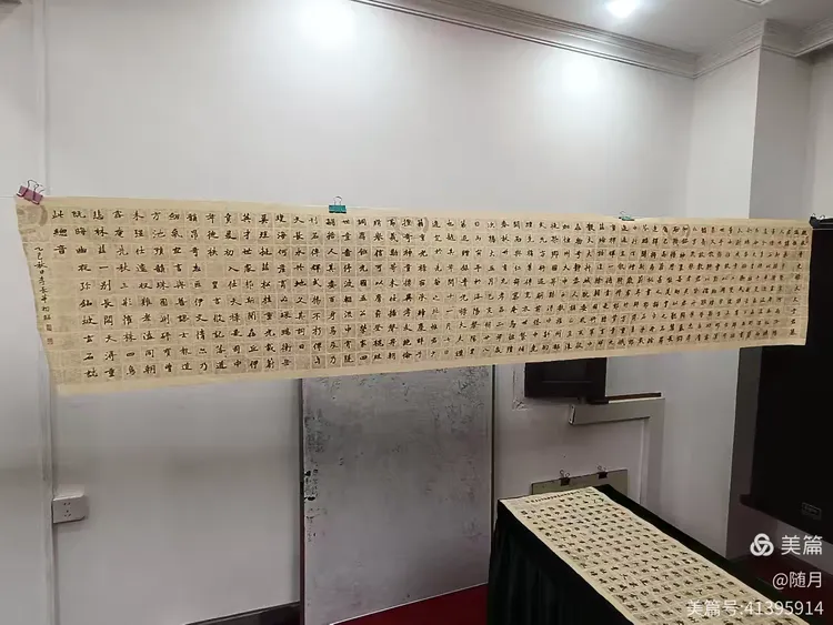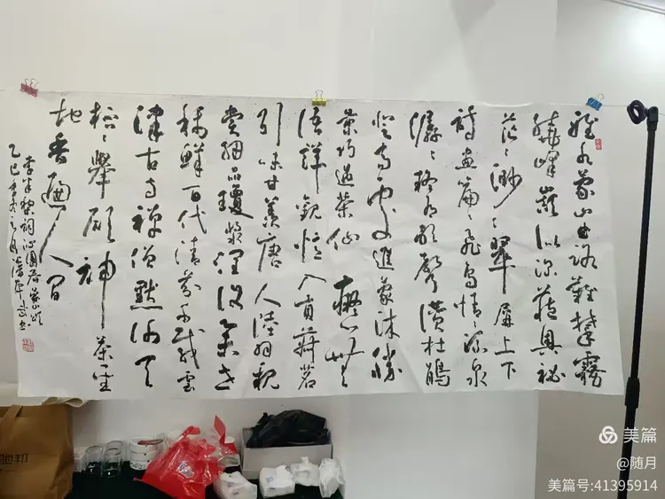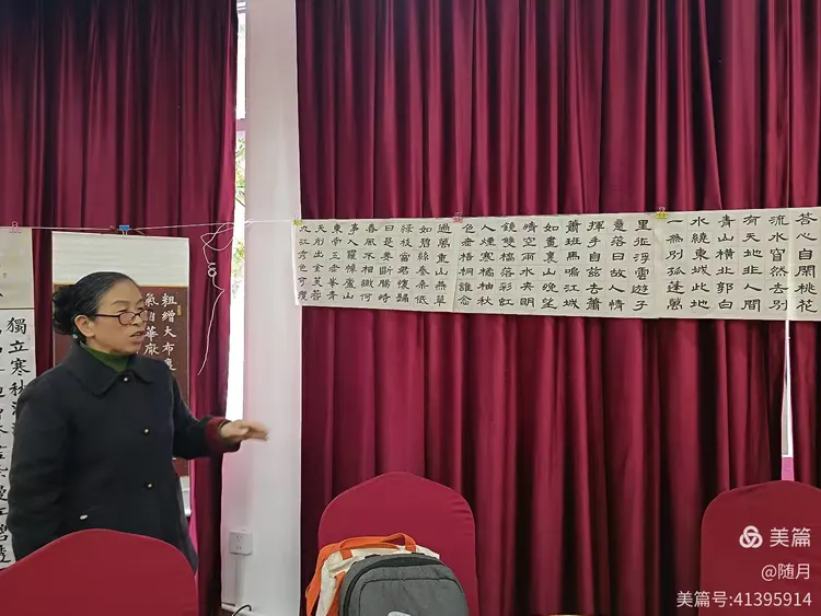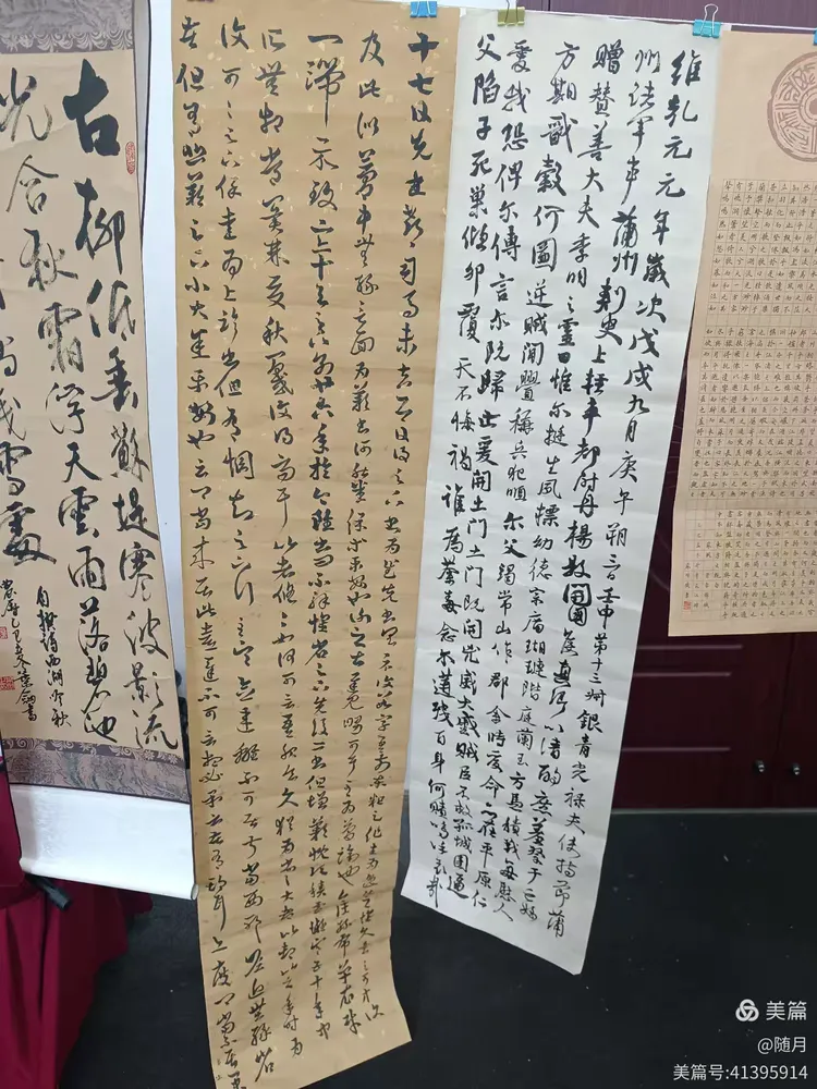一到活动场地,书友们纷纷将自己的作品悬挂展示于会议室。
