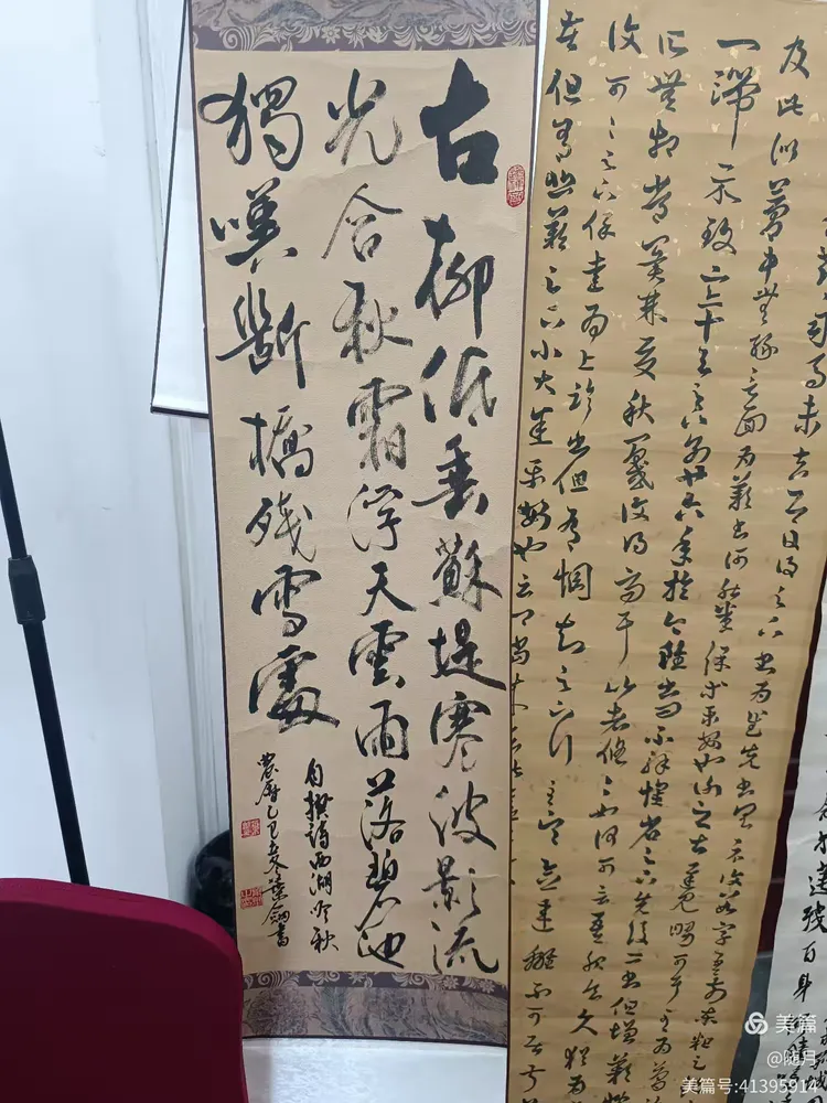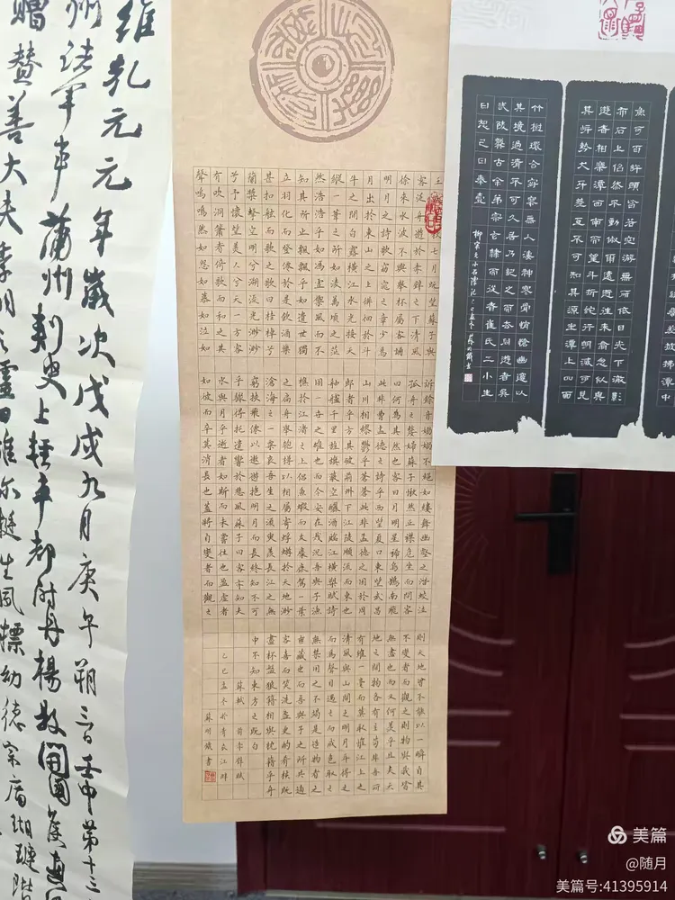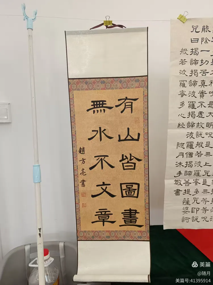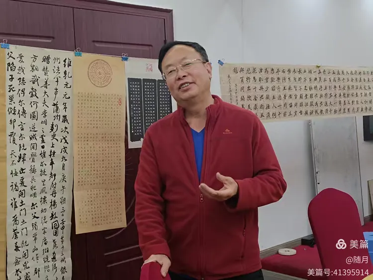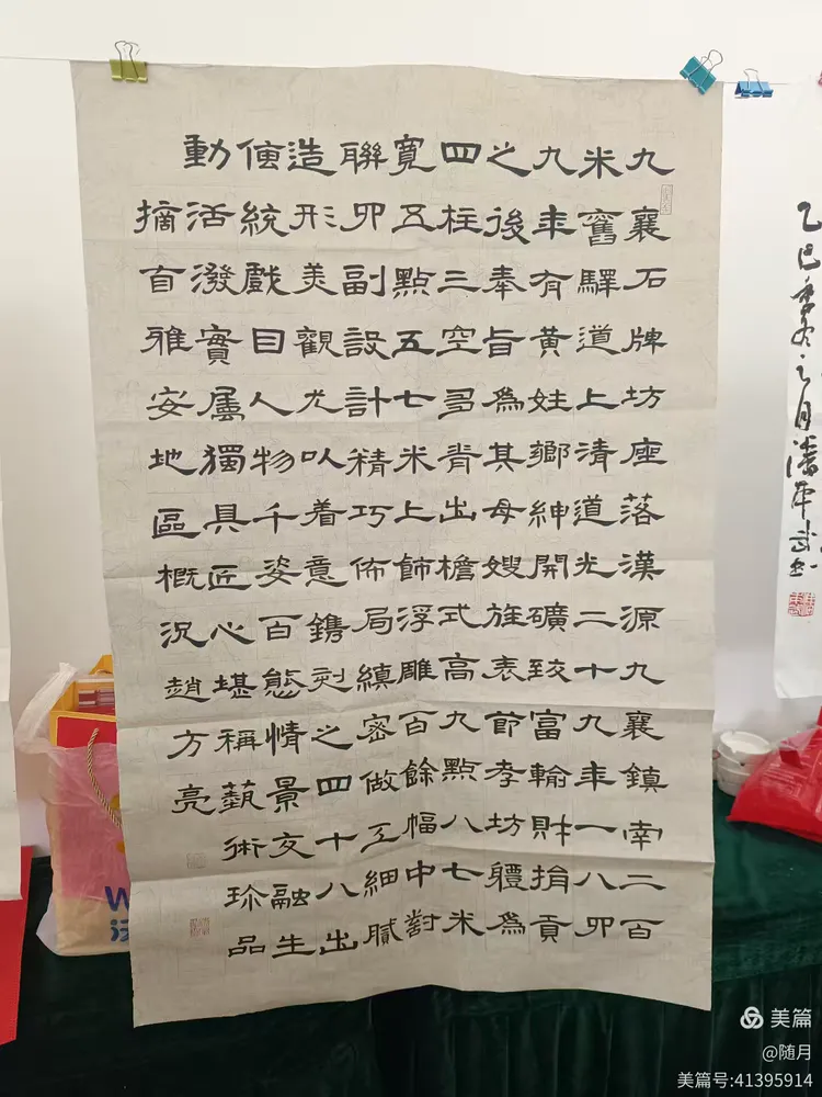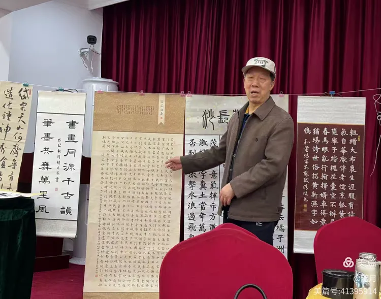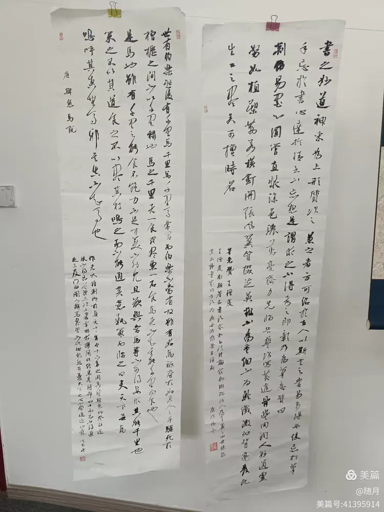 一到活动场地,书友们纷纷将自己的作品悬挂展示于会议室。
