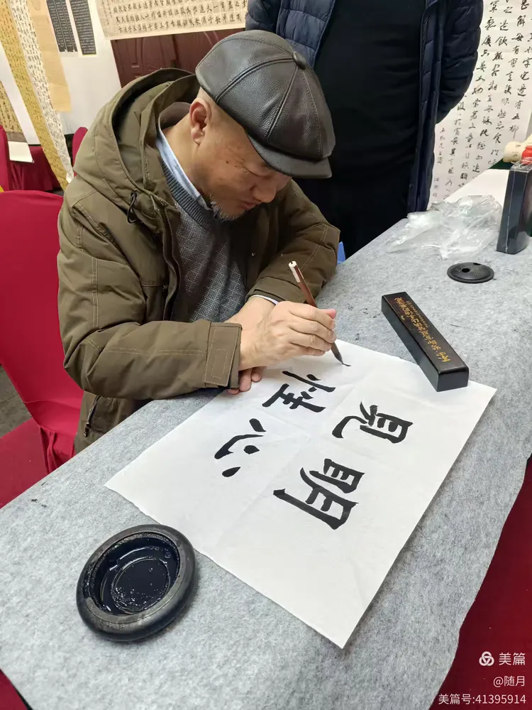 书案摆开,墨香骤然浓郁,几位资深书友展纸研墨,纷纷提笔挥毫。