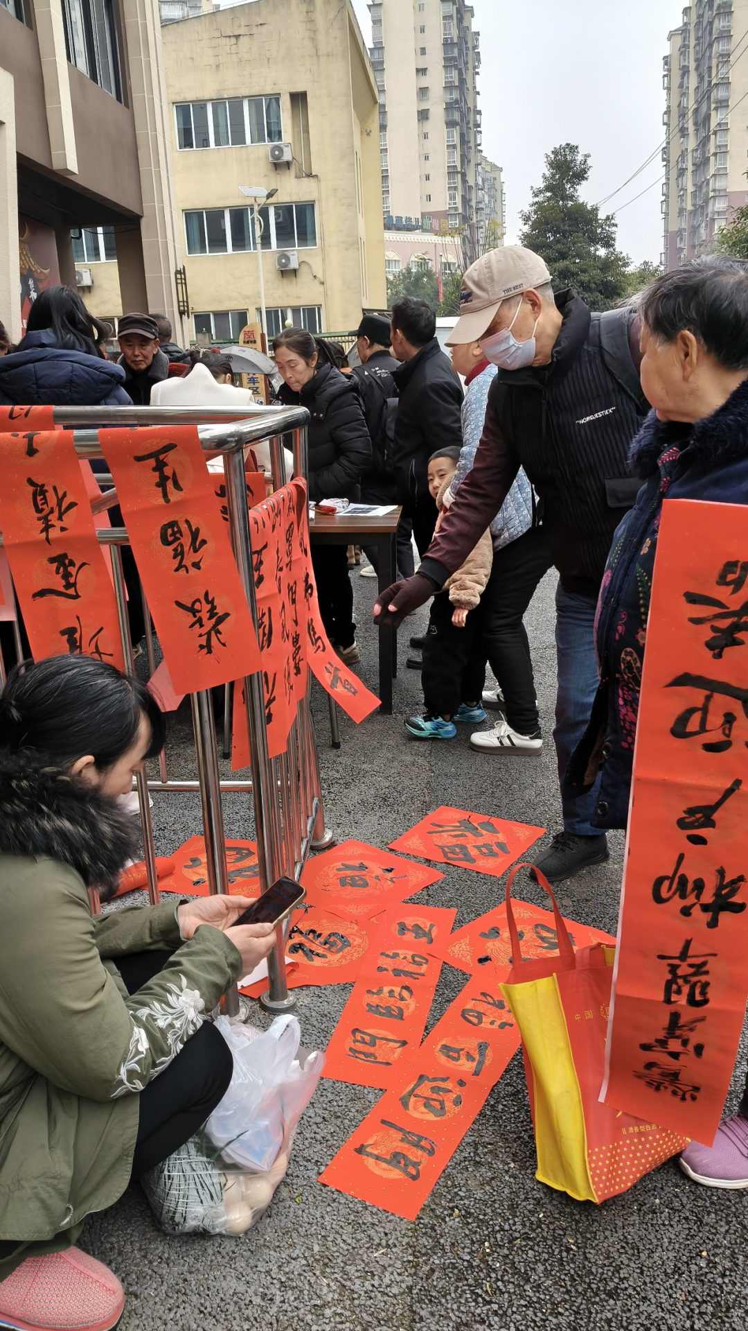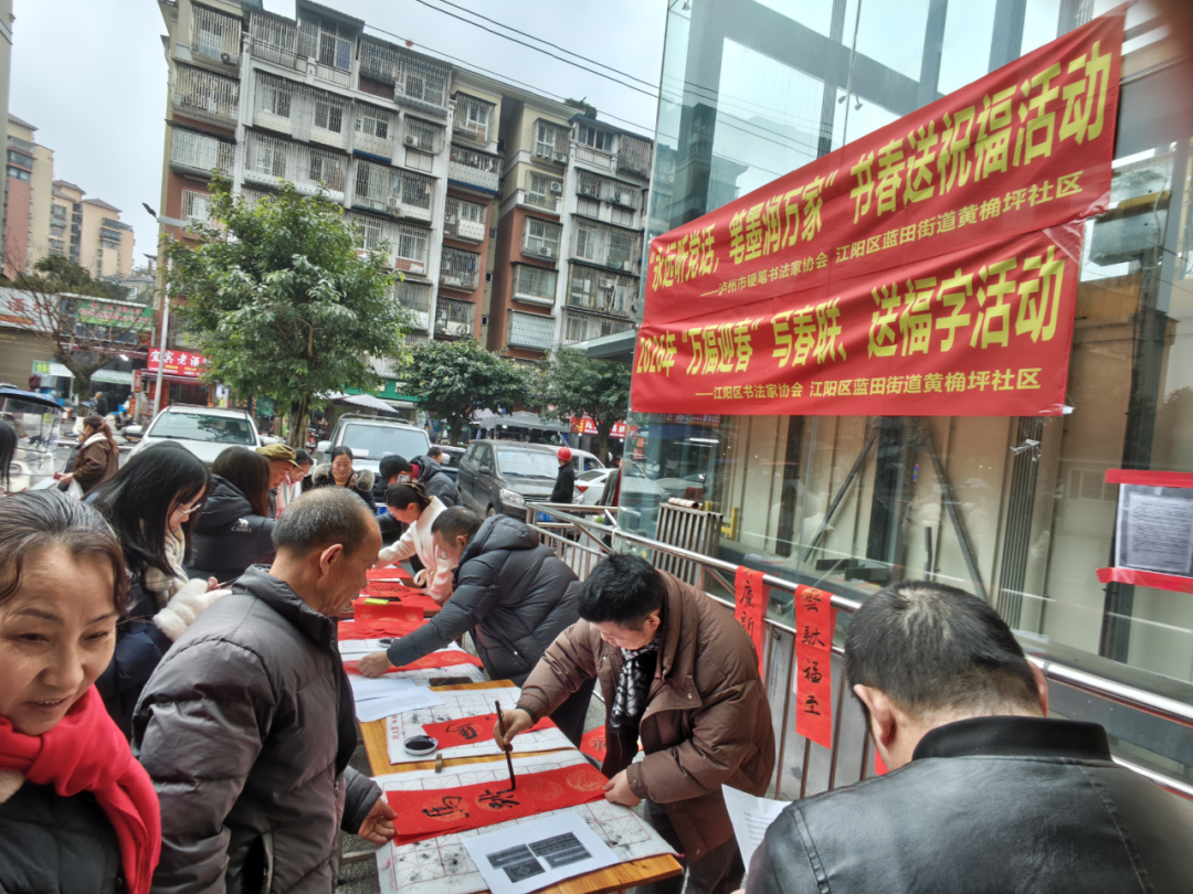 1月23日上午10时,江阳区蓝田街道黄桷坪社区南兴农贸市场门口早已人头攒动,居民们正排队等候领取手书春联。市硬笔书法家协会和江阳区书法家协会由此开启了“永远听党话,笔墨润万家”“万福迎春”新年送联祝福文化活动的序幕。