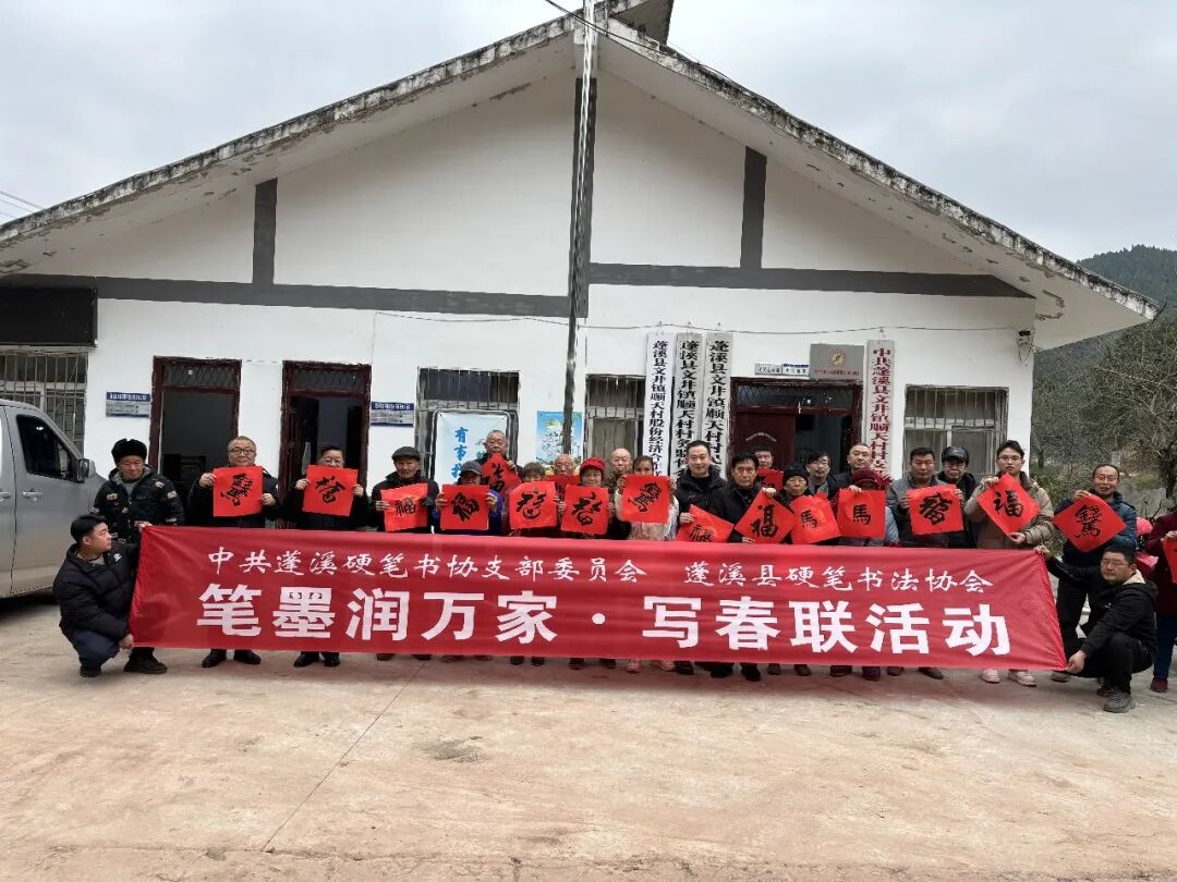 2026年1月19日,“笔墨润万家”写春联送祝福活动在蓬溪县文井镇顺天村举办。活动由顺天村驻村工作队、顺天村村民委员会、蓬溪县硬笔书法协会共同举办,7位书协会员代表现场书写近200套春联和“福”字,向文井镇顺天村村民致以丙午马年新春的祝福。 活动现场热闹非凡,书法老师们凝神挥毫,—副副寓意吉祥的春联、一个个遒劲有力的“福“字跃然纸上。村民们围在桌旁,捧着心仪的春联和福字,脸上洋溢着幸福的笑容。 蓬溪县硬笔书法协会主席谢代勋代表蓬溪硬笔书协向为本次活动付出辛勤劳动的单位和个人表示衷心感谢,并祝福大家马年阖家幸福安康。他提到,蓬溪硬笔书协以“弘扬传统文化,践行大书法”为宗旨,历年来协会众多会员志愿者走进军营、企业、机关、乡村、景区、校园、社区等开展送文化活动。接下来,协会将坚持开展“书法七进”活动,为推动蓬溪书法事业发展,不断贡献力量。