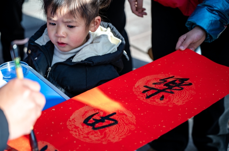 作为全国联动的文化公益行动组成部分,此次活动紧扣“万福迎春”主题。活动现场,红幅高悬、墨香四溢,书法家们凝神挥毫,各体兼备的春联与“福”字跃然纸上。“骏马奔腾开锦绣,春风浩荡展宏图”“宝马驮来千顷福,金莺衔得万家春”等贴合马年主题的联句,既彰显“马到成功”的昂扬气象,又饱含对阖家幸福的期许;融入九寨山水特色与乡村振兴愿景的定制春联,更让群众倍感亲切,现场一派喜庆祥和。